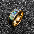 Women's 8mm Tungsten Carbide Electroplated Gold Inlaid Shell Ring