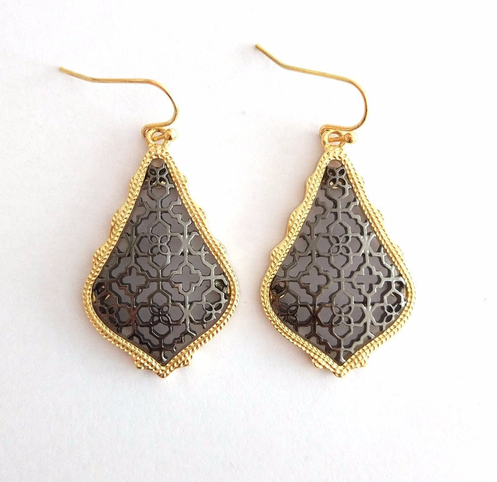 Filigree Tear Drop Bohemian Black And Gold Earrings