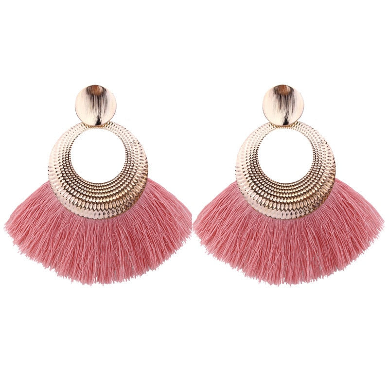 Flower Dangle and Tassel Fringe Earrings Description: Our Flower Dangle and Tassel Fringe Earrings are...