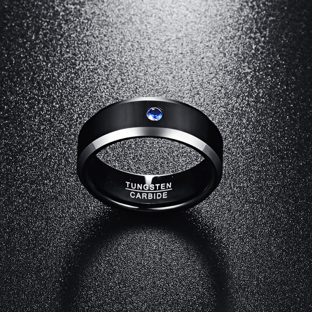 Men's 8mm Black Brushed Blue Cubic Zirconia Tungsten Rings Description: Mark the beginning of your...