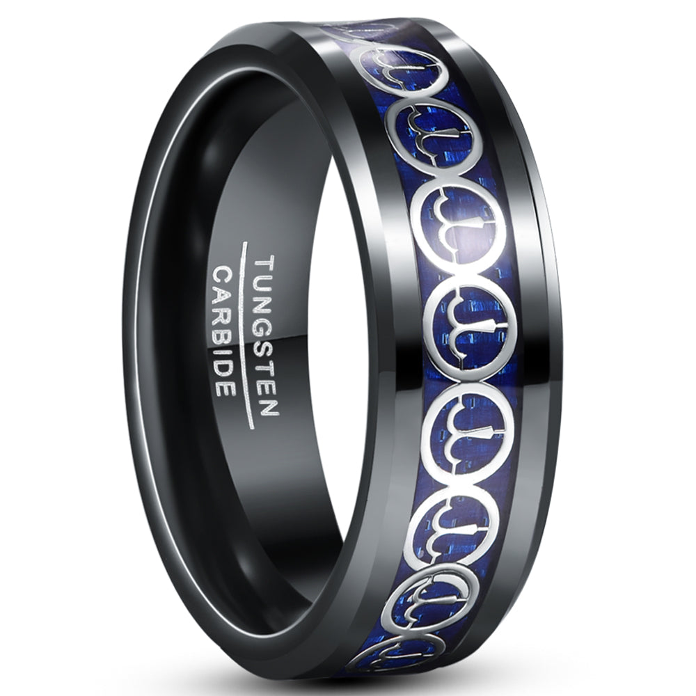 Men's 8mm Inlaid Celtic Knot Black Tungsten Carbide Ring Description: Mark the beginning of your...