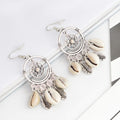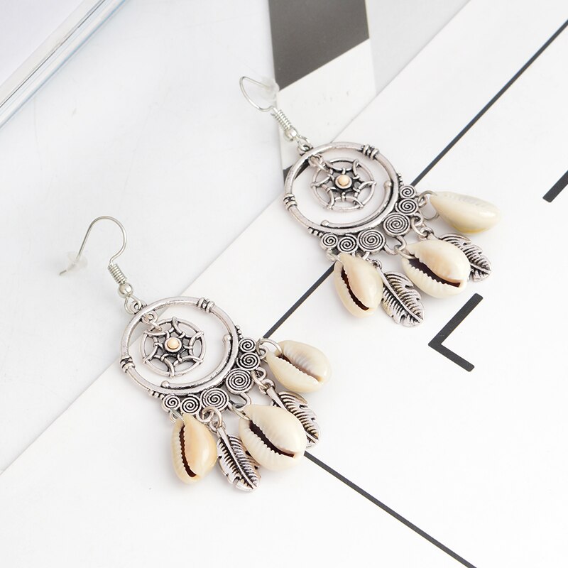 Silver Feather and Sea Shell Bohemian Drop Earrings Description: