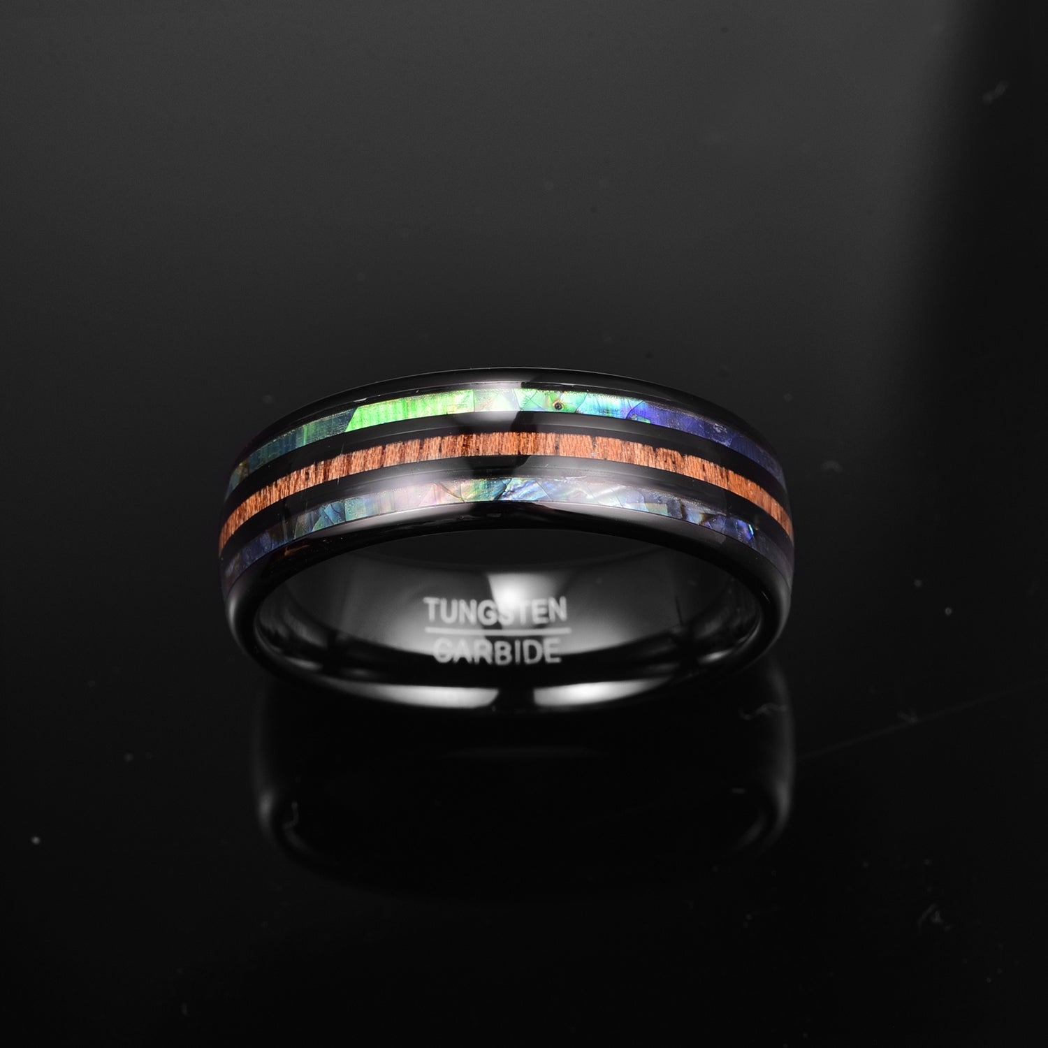Mark the beginning of your lifetime romance with this Men's 8mm Electric Black | Green | Blue Abalone and Wood Grain Inlay Black Tungsten Carbide Ring. This Men's 8mm Electric Black | Green | Blue Abalone and Wood Grain Inlay Black Tungsten Carbide Ring is a modern statement of love. This Men's 8mm Electric Black | Green | Blue Abalone and Wood Grain Inlay Black Tungsten Carbide Ring is available in select sizes only. The profile ensures this Men's 8mm Electric Black | Green | Blue Abalone and Wood Grain Inlay Black Tungsten Carbide Ring is one of the most comfortable rings you will wear. This Men's 8mm Electric Black | Green | Blue Abalone and Wood Grain Inlay Black Tungsten Carbide Ring makes an excellent wedding band, engagement, or anniversary ring.