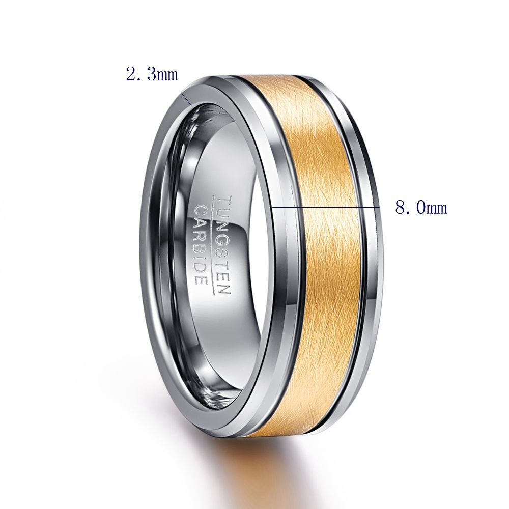 Men's 8mm Gold Inlay Silver Tungsten Carbide Ring