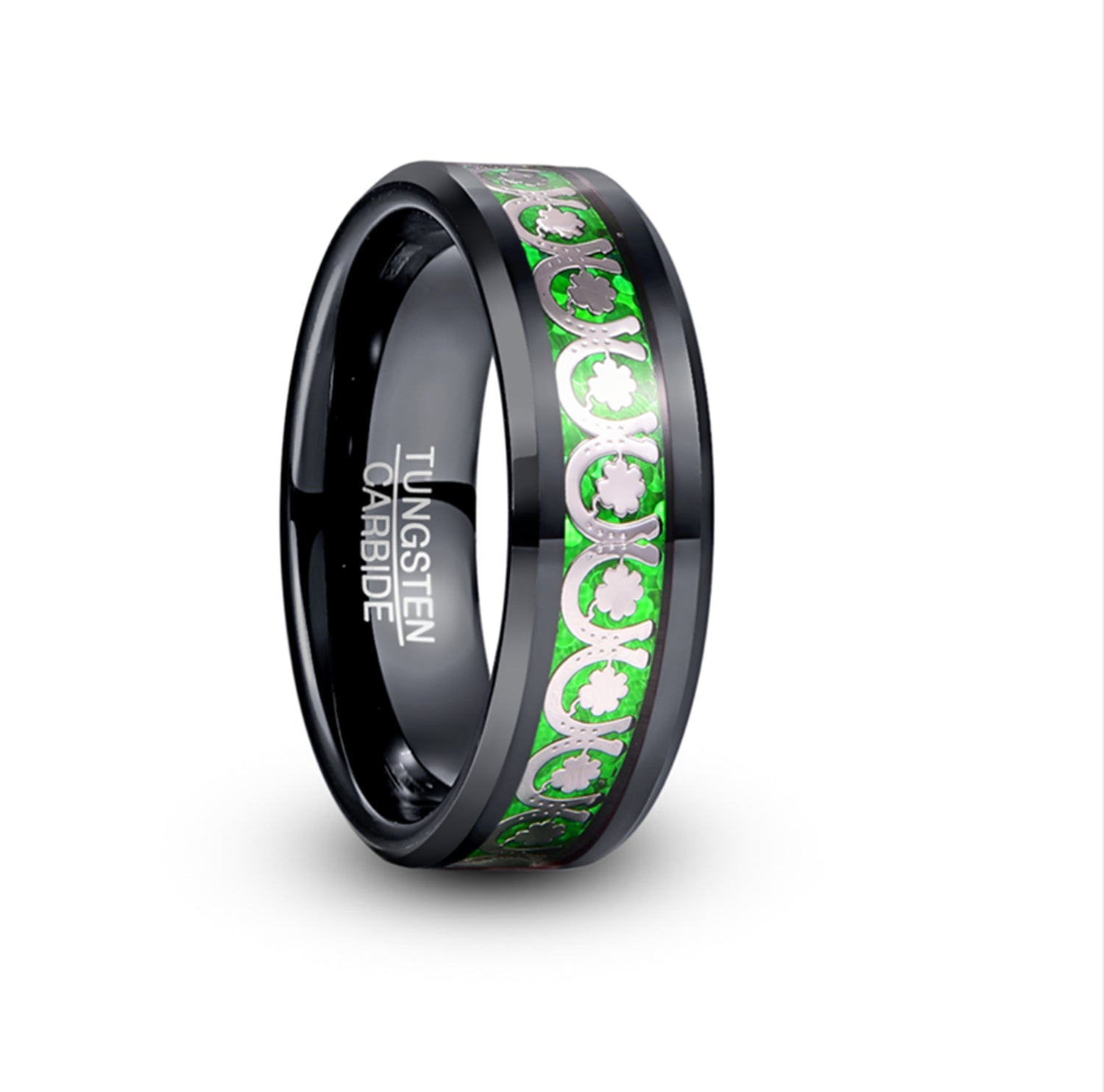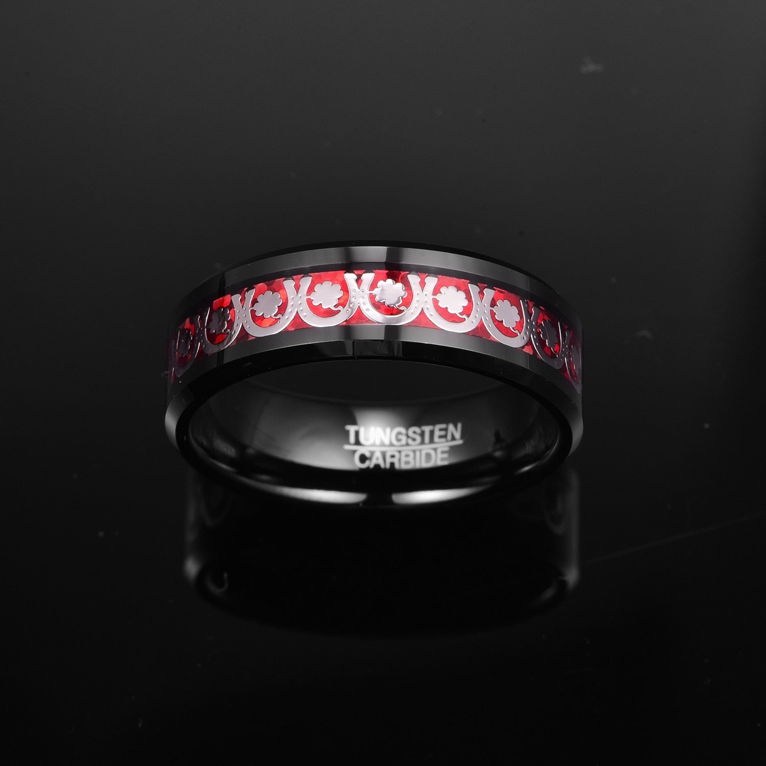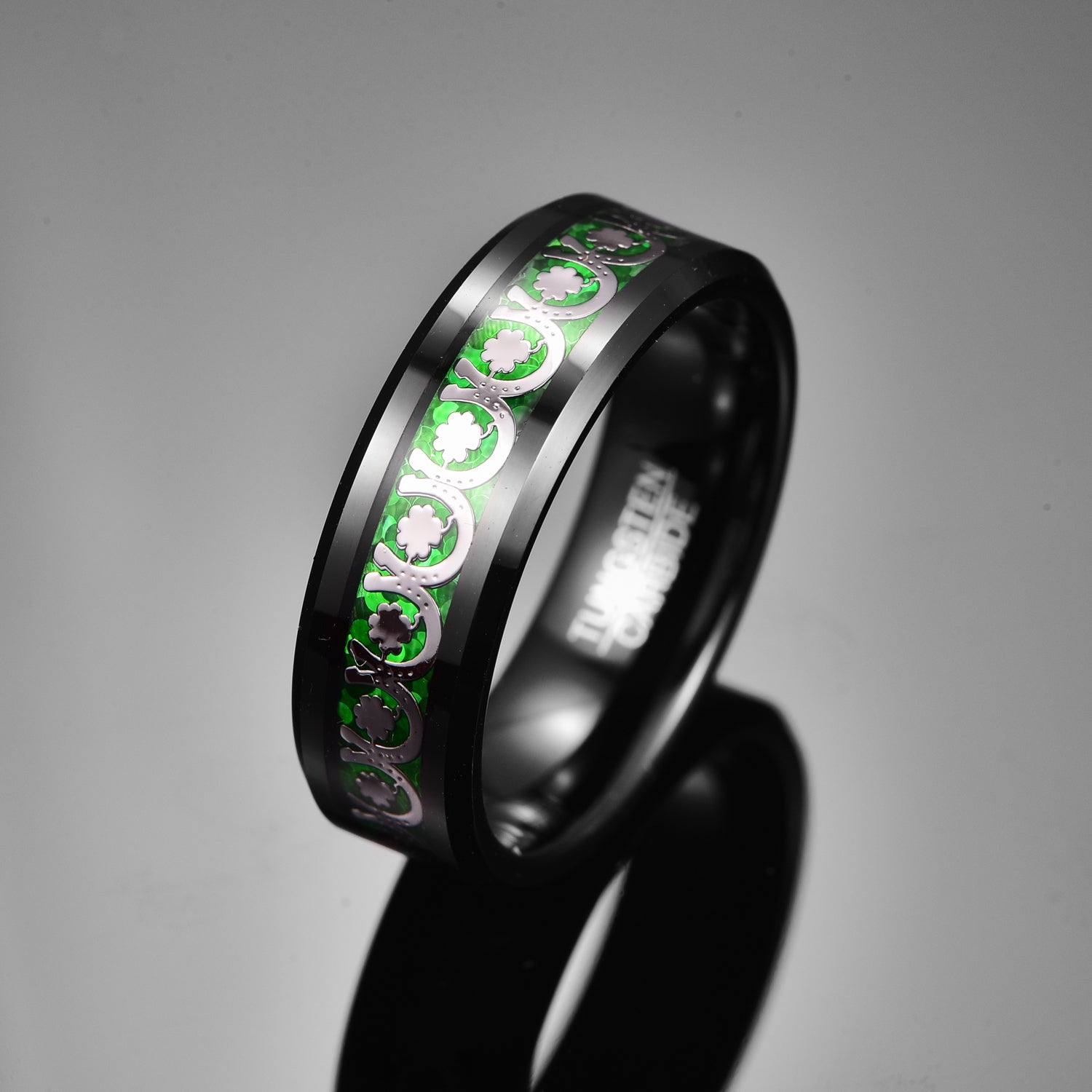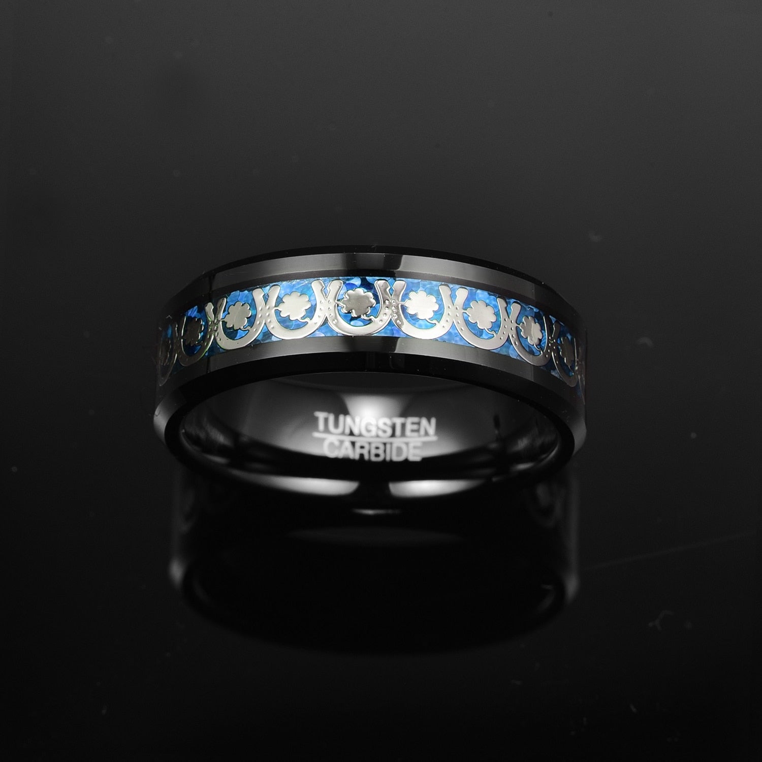 Men's 8mm Lucky Horseshoe Inlay Black Tungsten Carbide Ring