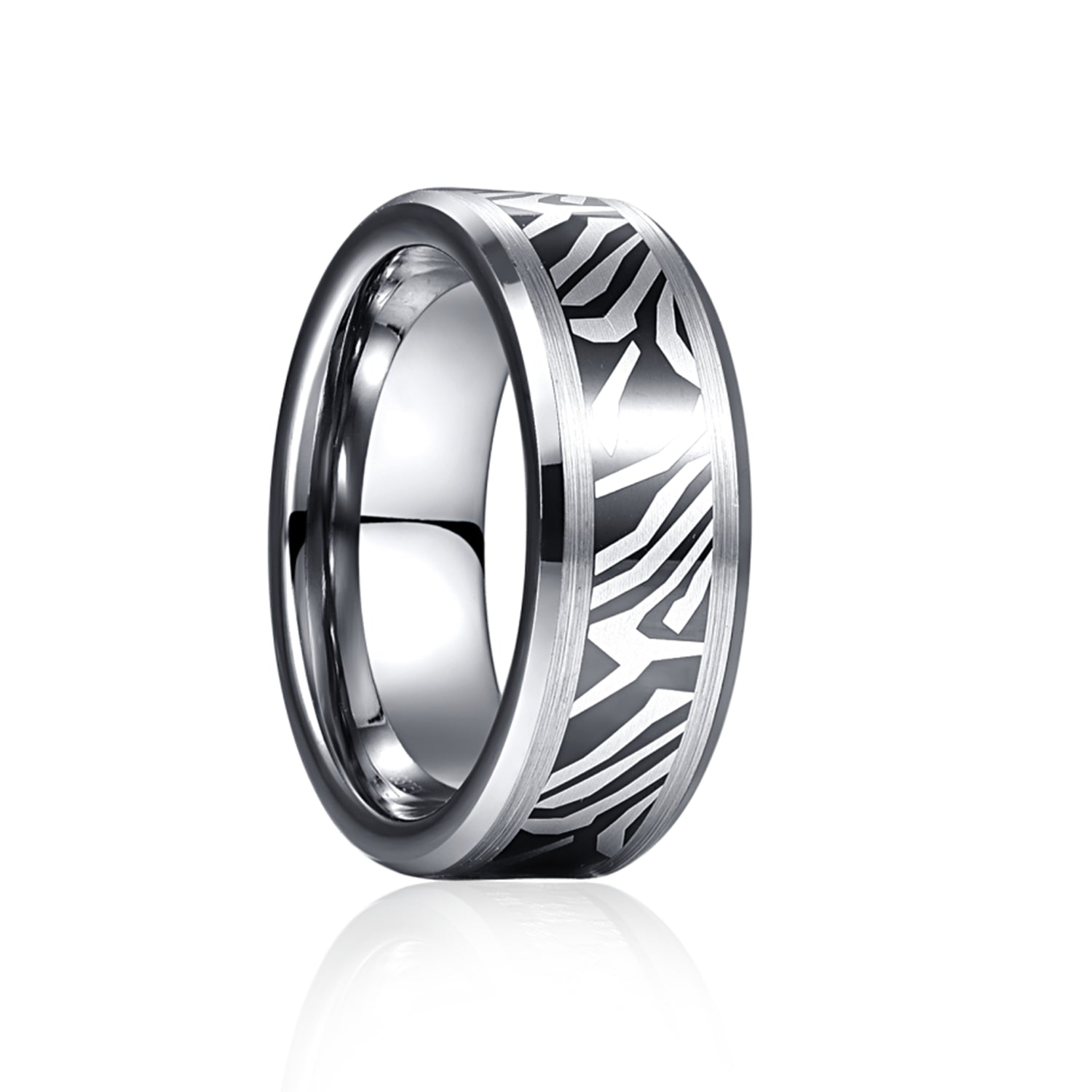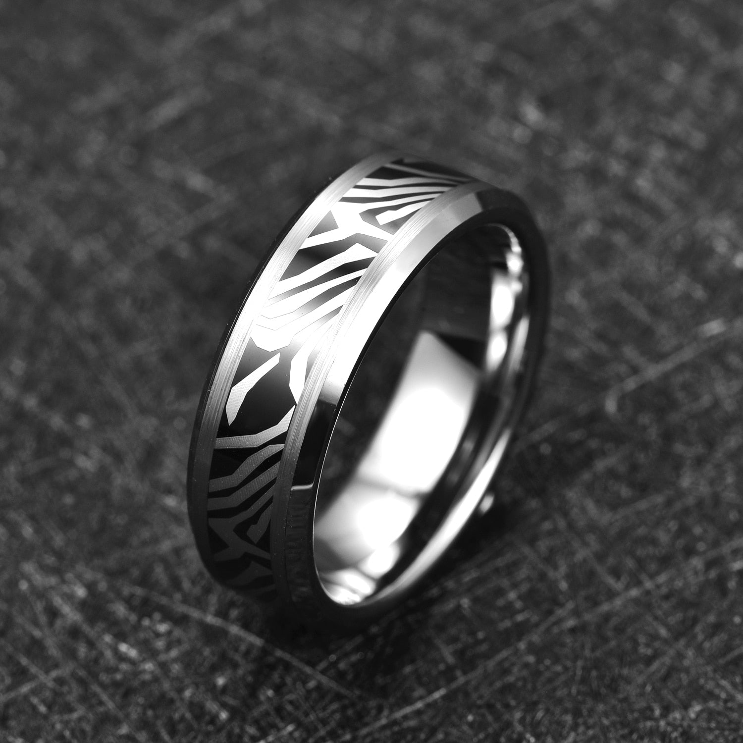 Order your Men's Silver Carbon Zebra Fleck Tungsten Carbide Ring today!
