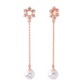 CZ Snowflake Rose Gold plated Drop Pearl Earrings