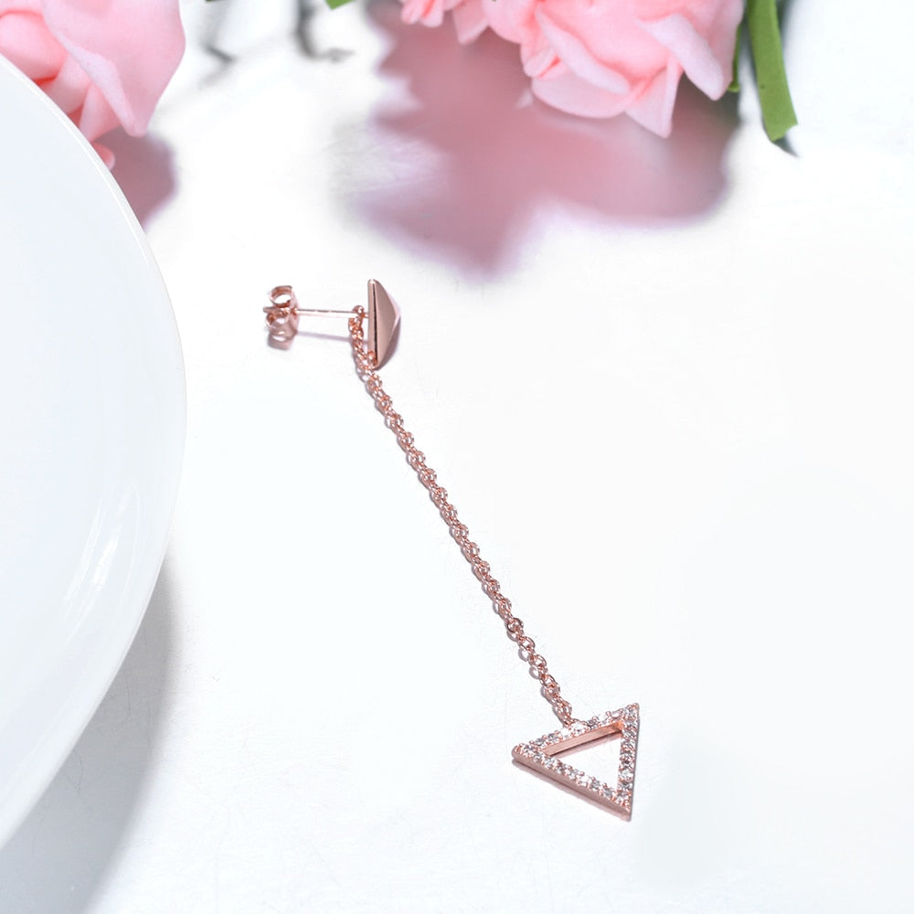 Sparkling and stunning, these Gold Triangle Drop Cubic Zirconia Pendant Earrings will capture your heart at first sight. Crafted in excellence, each features a sparkle to the design. This pair of Gold Triangle Drop Cubic Zirconia Pendant Earrings will show an charming look on your ears. Treat yourself or surprise her with these masterpiece Gold Triangle Drop Cubic Zirconia Pendant Earrings.