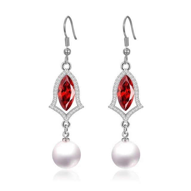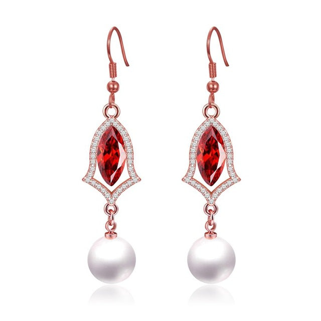 Order your Pearl And Red Ruby Color Drop Earrings today!