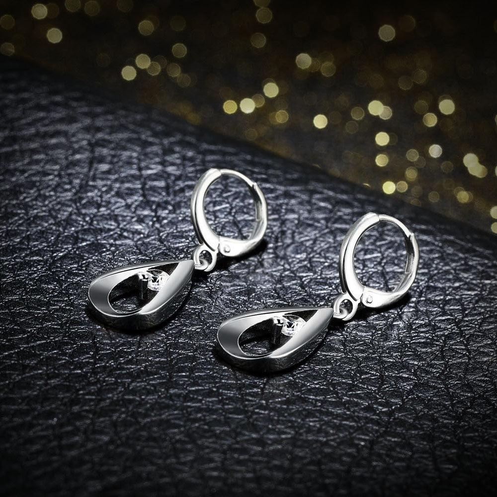 Romantic Silver And CZ Charm Water Drop Drop Earrings