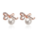 Rose Gold Bow and Simulated Pearl Stud Earrings
