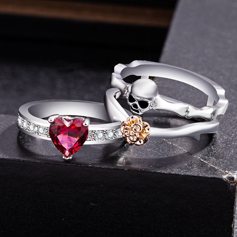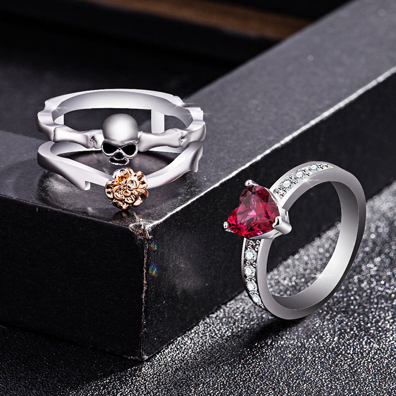 Women's Skull Heart CZ Crystal Rose Titanium Plated Ring