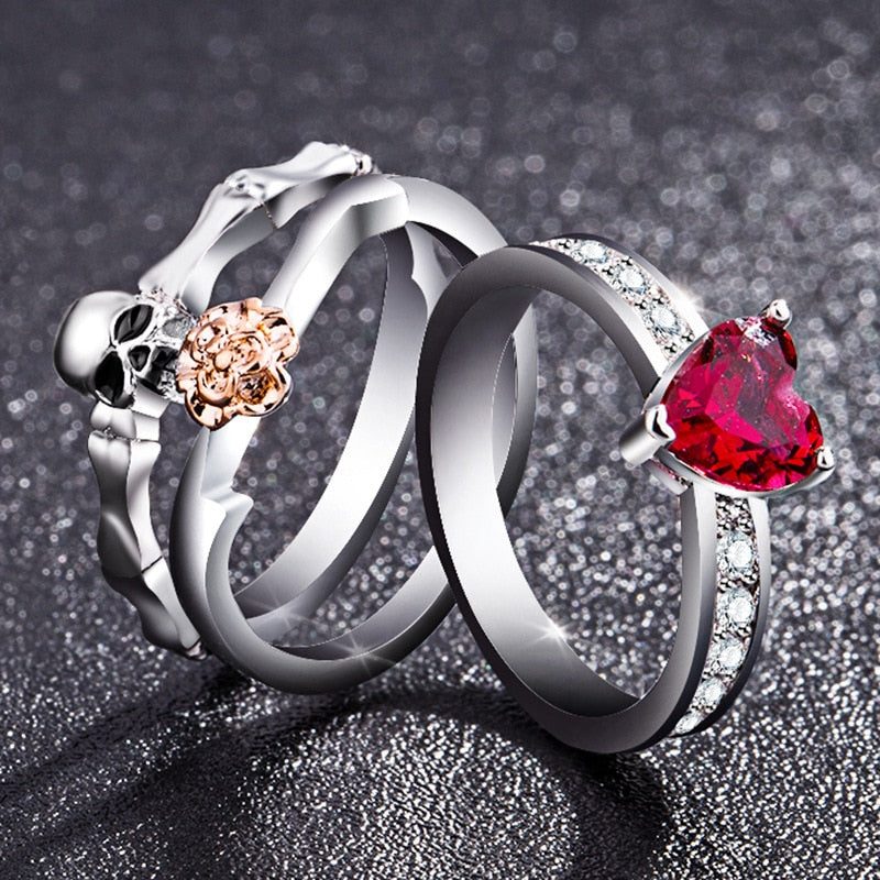 Order your Women's Skull Heart CZ Crystal Rose Titanium Plated Ring today!