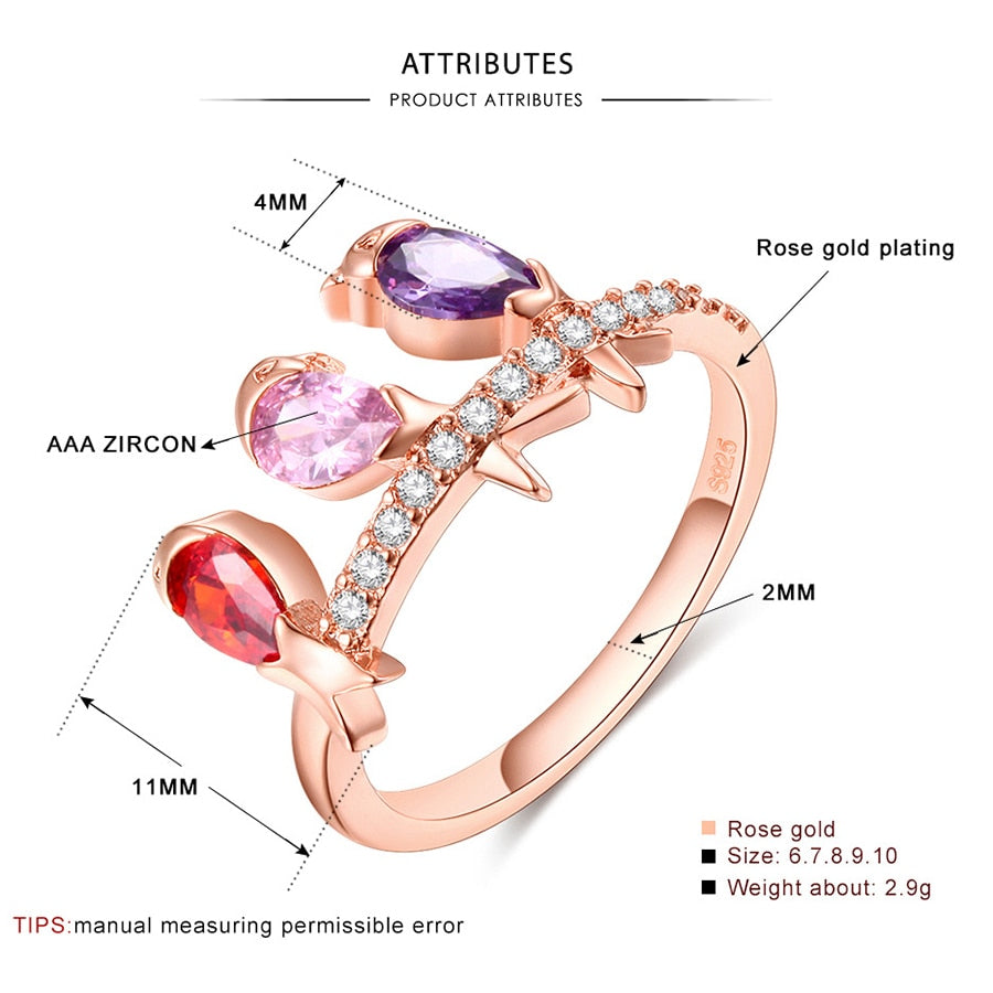 Women's Three Perched Birds CZ Rose Gold Plated Ring Description: