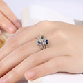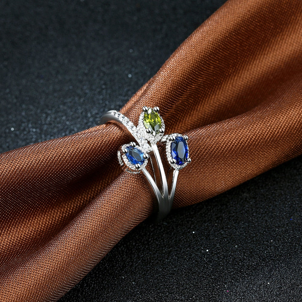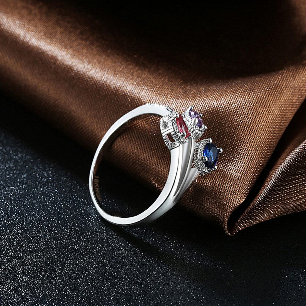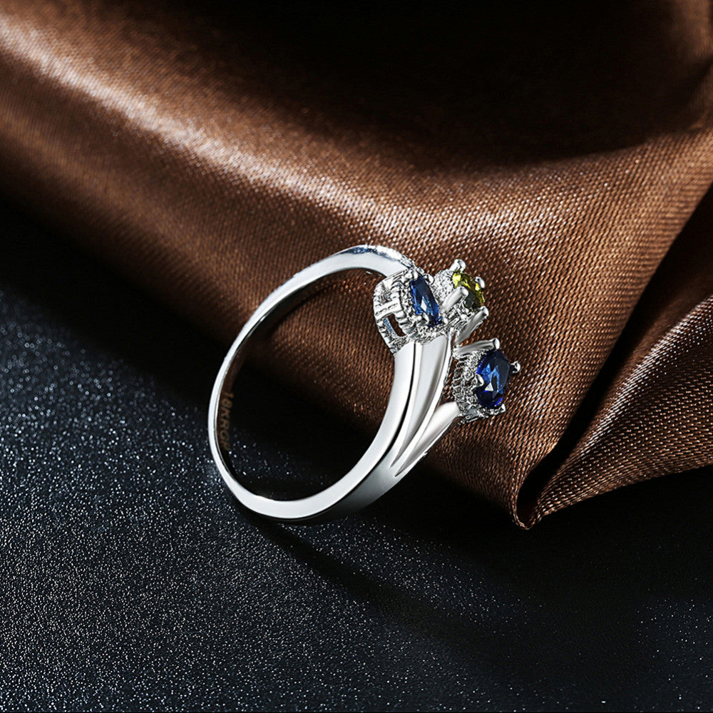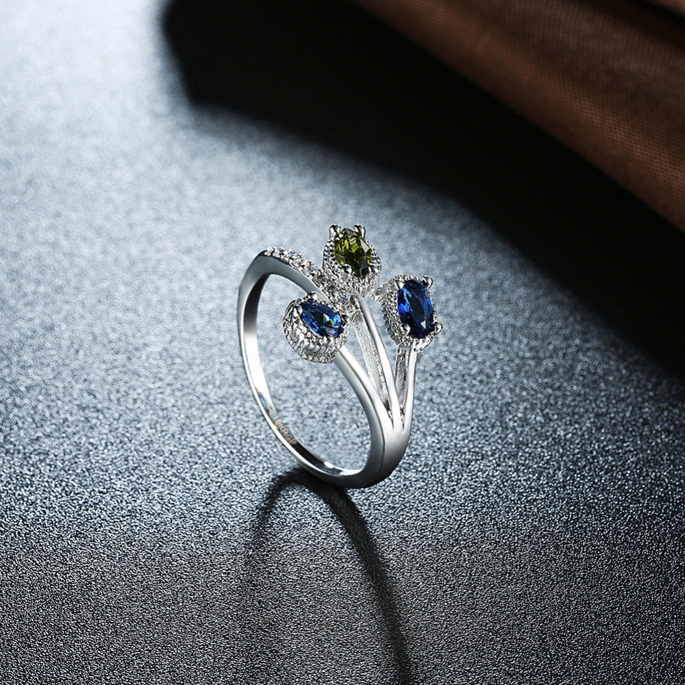 Women's White Gold Plated CZ Crystal Tricolor Bouquet Ring