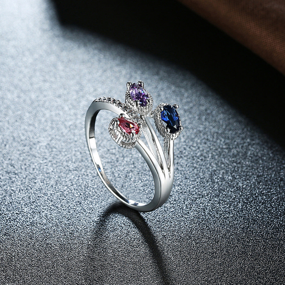 Order your Women's White Gold Plated CZ Crystal Tricolor Bouquet Ring today!