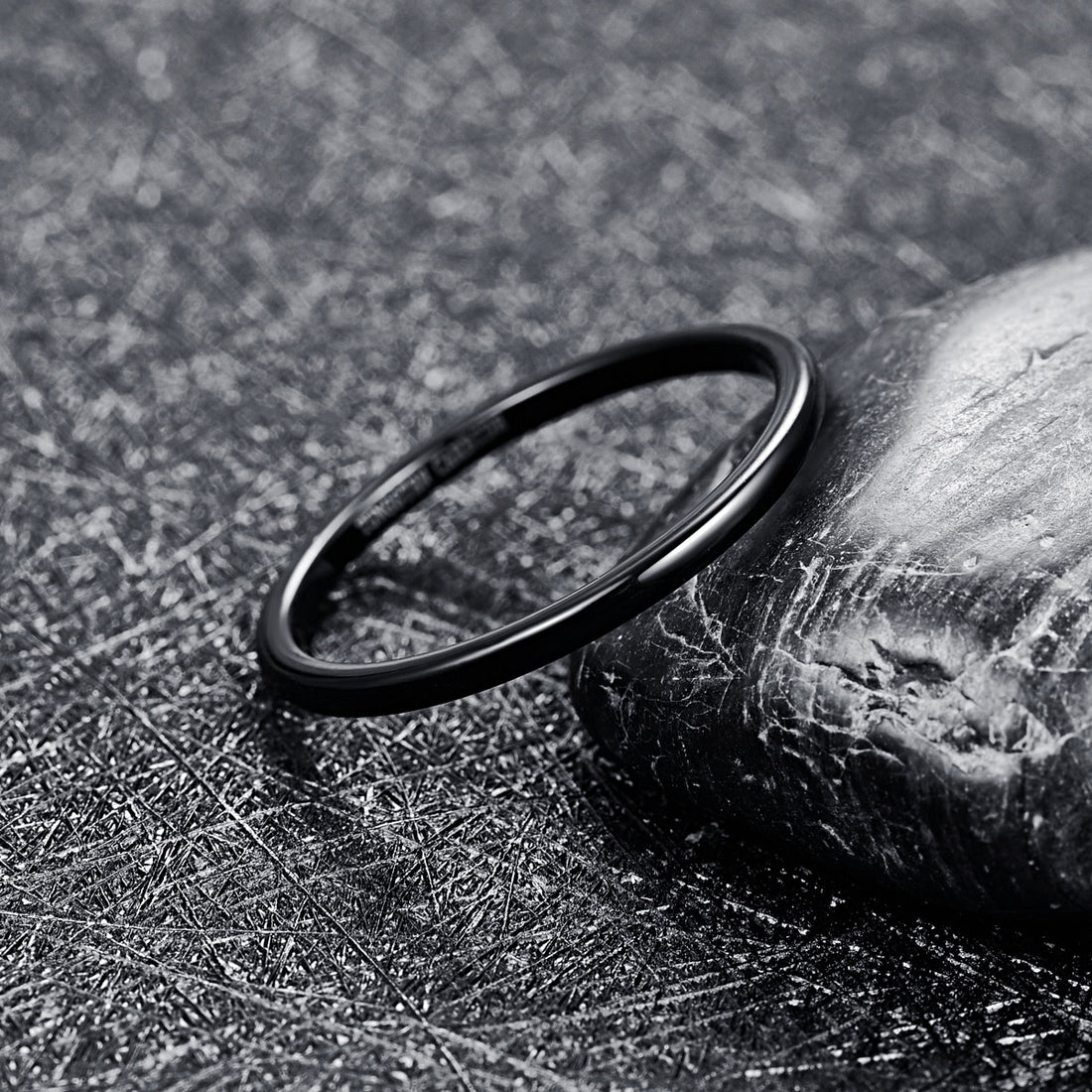 Women's 2mm Black Tungsten Carbide Ring Description: This classic Women's 2mm Black Tungsten Carbide Ring...