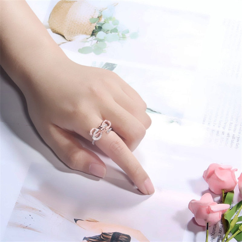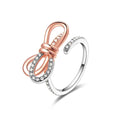 Women's Adjustable Crystal Bow CZ Copper and Silver Plated Ring