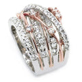 Women's Multilayer Crossover Band CZ Silver and Rose Gold Plated Ring