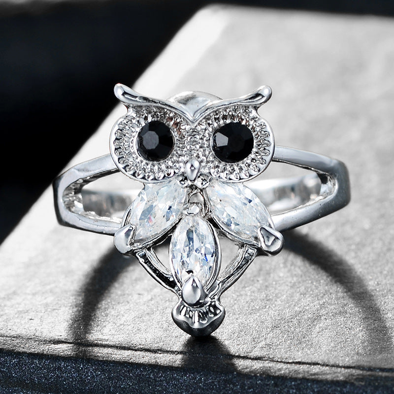 Order your Women's Owl Silver and Gold Plated CZ Crystal Ring today!