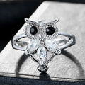 Women's Owl Silver and Gold Plated CZ Crystal Ring