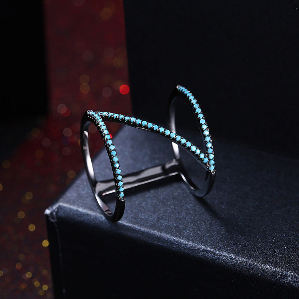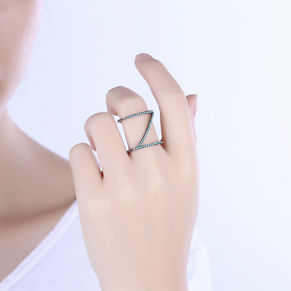Women's Z Shape Gunmetal Crystal Ring