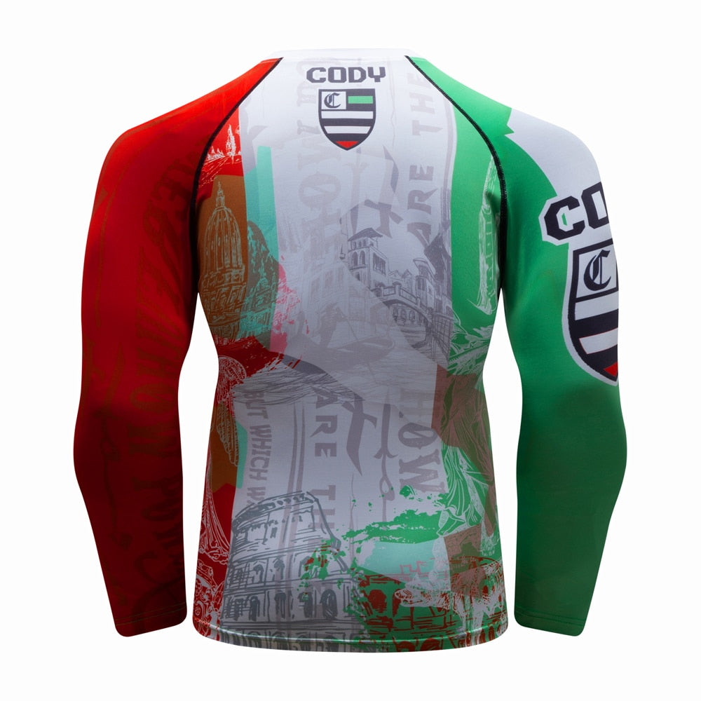 - Stylish Design: With its striking Italian flag print, this rashguard not only performs well but also looks great, turning you into the superhero of your workout.