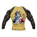The Kids Bluey 'No Take Backs' Long Sleeve Compression Rashguard is a kid-friendly training top designed for young jiu-jitsu and MMA enthusiasts who train with the same passion as they play. With Bluey-inspired graphics and a performance-driven design, it delivers comfort, durability, and freedom of movement on the mat.