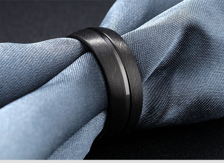 Men's 9mm Polished Inner Groove Matte Black Tungsten Carbide Ring Description: